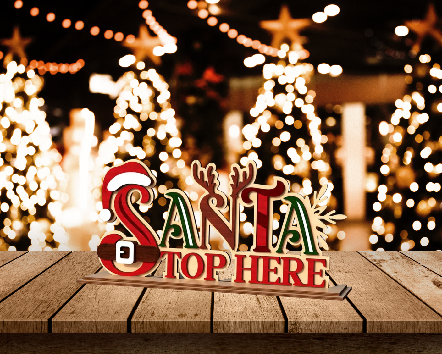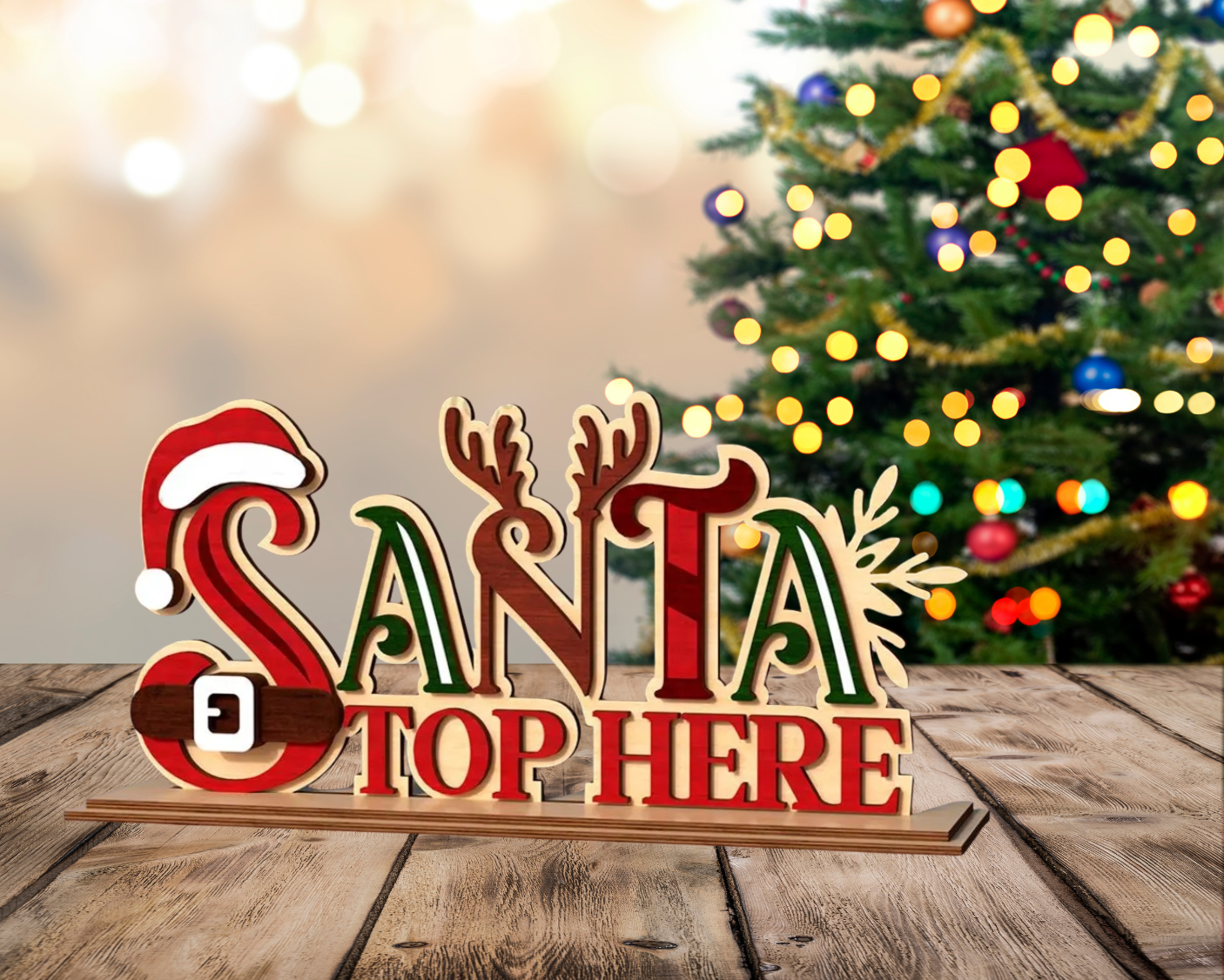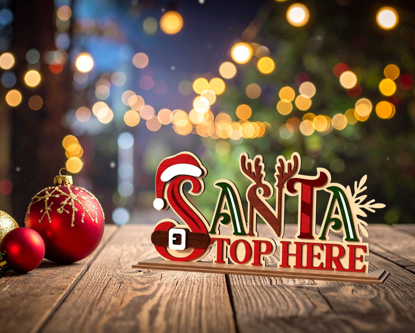 Bring the magic of Christmas to life with our beautifully crafted “Santa Stop Here” wooden sign. Made with precision laser engraving and vibrant festive colors, this holiday decoration is perfect for placing by the Christmas tree, on a mantel, or by the front door to let Santa know where to stop!